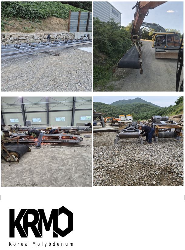 폐석적치장에 적재되어 있는 벨트 컨베이어(Belt conveyor) 2기를 추가로 가져와서 골재라인 공정의 길이에 맞게 재단하여 절단하고 기기 점검과 교체를 진행하였습니다.