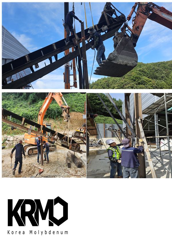 100ton 중량의 크레인 장비를 대여하여 골재라인의 벨트 컨베이어(Belt conveyor)를 전부 연결하였습니다.