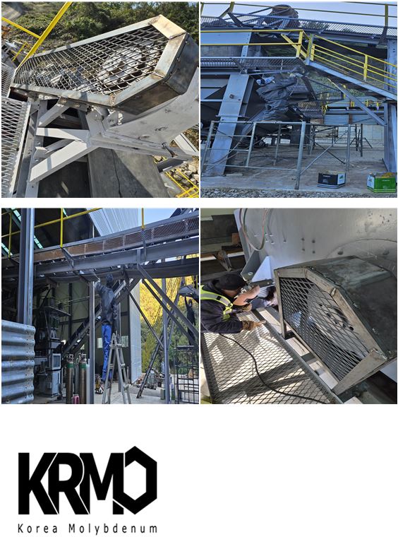 Separately, the EX-METAL mesh guards on the belt conveyors and the external railing supports fabricated with square pipe were painted.