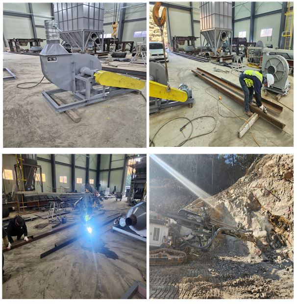 Currently, excavation of the new surface adit is progressing at a rate of approximately one blast per day. To maintain this excavation speed, hydraulic drill parts and consumables for excavators and payloaders were prepared and replaced as needed. In addition, a large quantity of stemming material was prepared in advance to be placed after charging explosives and detonators. The stemming material plays a crucial role in maximizing explosive force and preventing the scattering of fragments.