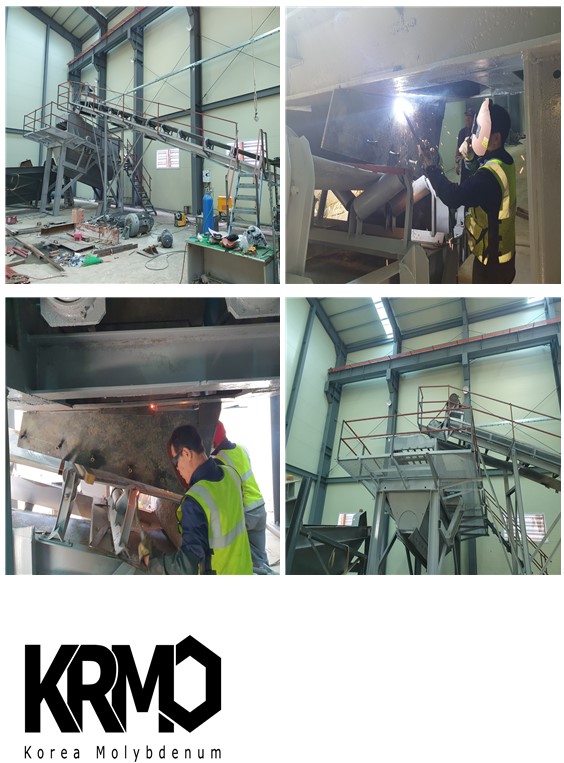 A steel guide chute was added beneath the jaw crusher to ensure crushed ore is properly aligned and transferred onto the belt conveyor feeding the vibrating feeder.
